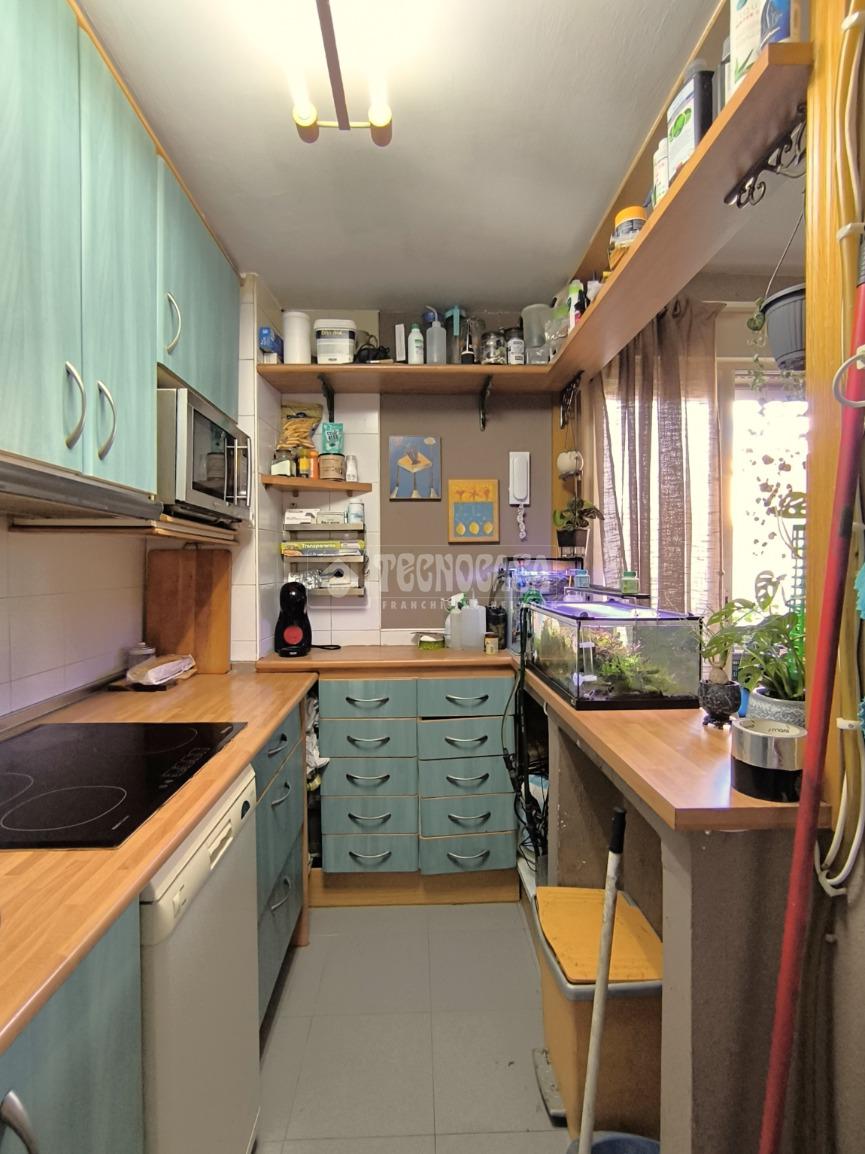 La cocina, completamente amueblada y equipada, es un espacio funcional donde podrás dar rienda suelta a tu creatividad culinaria, conectado con el salón y una práctica terraza tendedero para mayor comodidad. Este piso, construido en 2000, se encuentra en la segunda planta con ascensor, lo que garantiza un acceso fácil y cómodo.